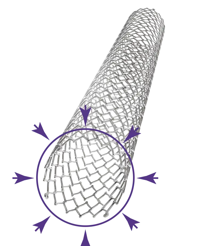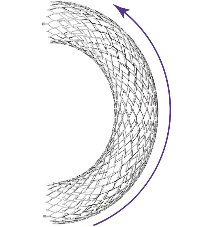 Células abertas e células fechadas nas extremidades para equilíbrio de Flexibilidade e Força Radial. Sistema de liberação pullback